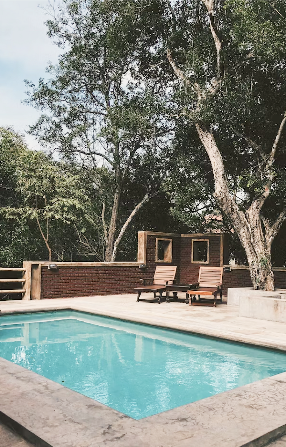 Dive into Tranquility: Refreshing Outdoor Pool Amidst Lush Landscapes.